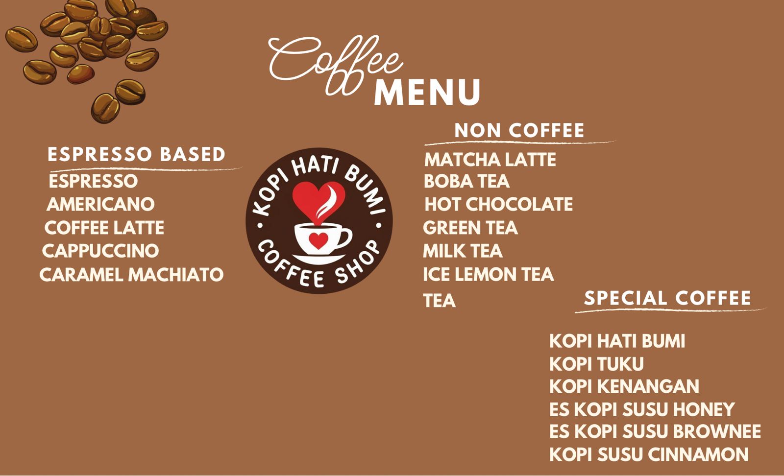 Located in the heart of West Jakarta, Indonesia, Kopi Hati Bumi (Earth’s Heart Coffee)is more than just a coffee shop – it’s a space where passion for coffee meets the warmth of human connection. We serve freshly brewed, high-quality Indonesian and international blends, paired with delicious snacks and heartfelt service. Whether you’re a local resident or an international guest, Kopi Hati welcomes you to relax, connect, and enjoy coffee made with love.
